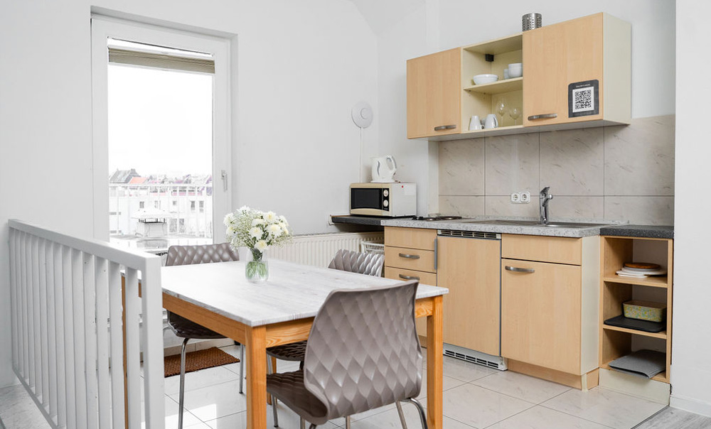 Unsere sieben komfortabel ausgestatteten Apartments für Langzeitgäste verfügen alle über: