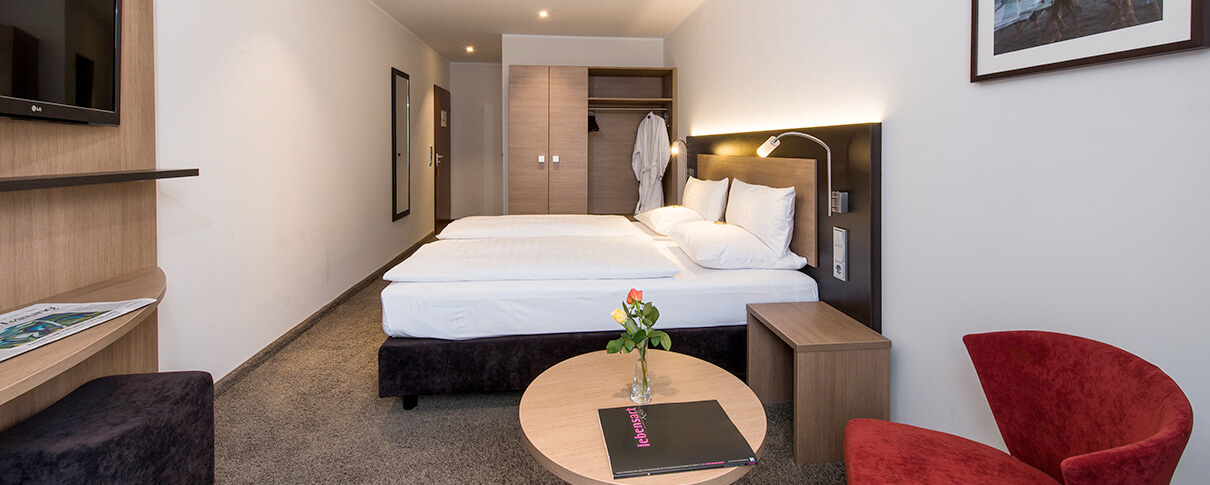 The Astor & Aparthotel offers you timeless comfort of living in prime position to the city centre. The 20 m² big business double rooms with 180/200 x 200 cm beds are facing the street side.